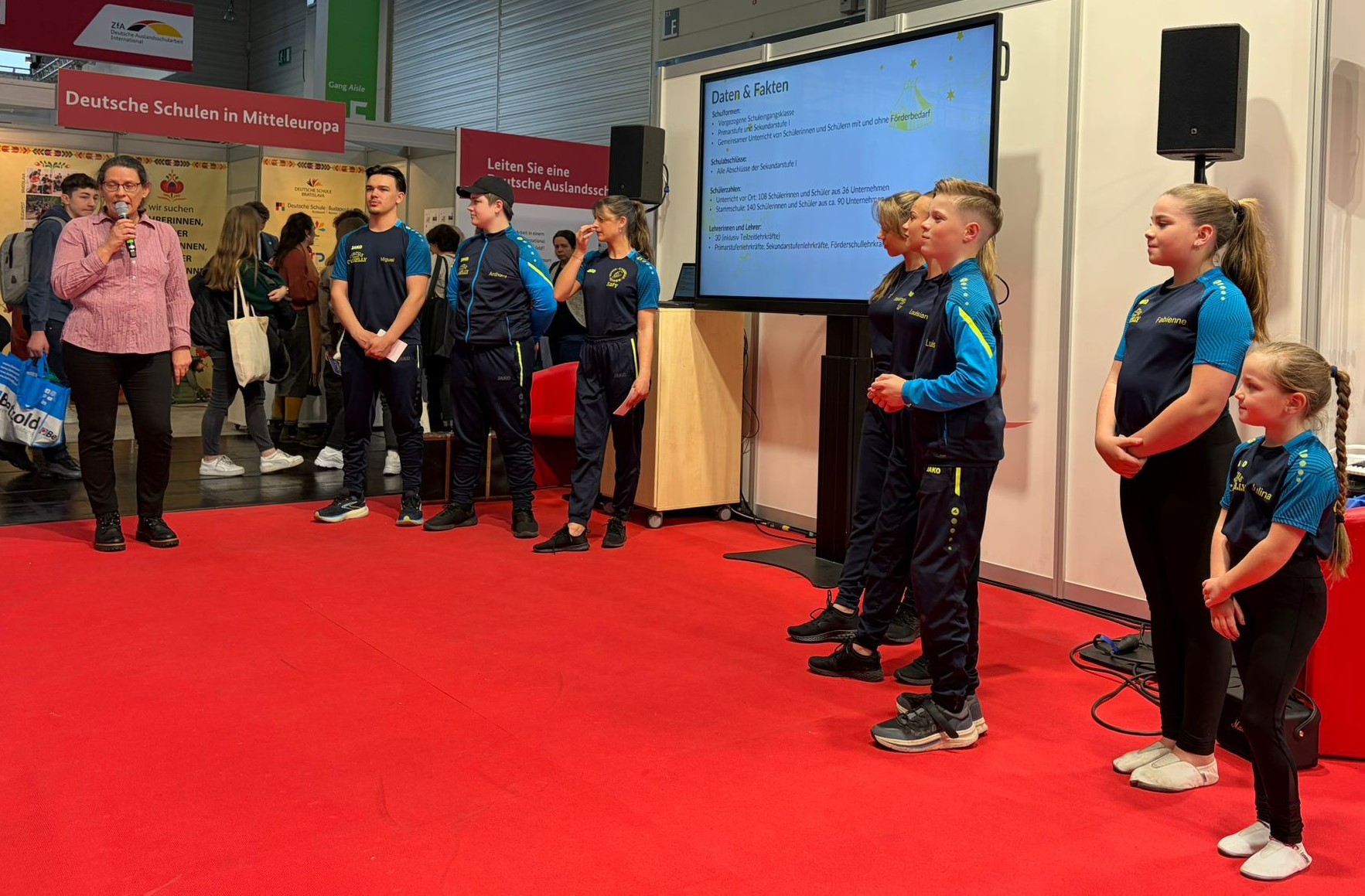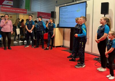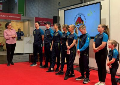 Ein besonderer Dank gilt auch ihrer Lehrerin Silke Fislage. Ihr Engagement hat wesentlich dazu beigetragen, dass der Auftritt der SfC auf der didacta so gelungen war.